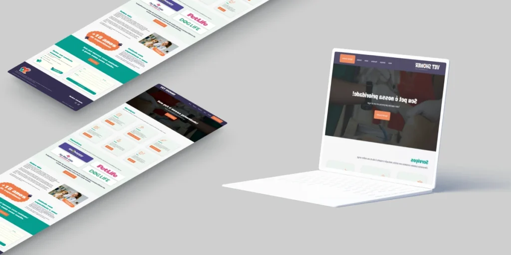 - Landing pages: páginas focadas em conversão para campanhas de marketing.